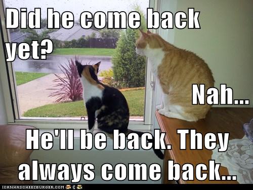 Did He Come Back Yet Nah He Ll Be Back They Always Come Back Cheezburger Funny Memes Funny Pictures