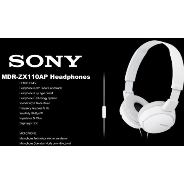 Sony Mdr Zx110ap Black Headphones With Mic Mdr Zx110ap B Original From Sony Malaysia Lazada