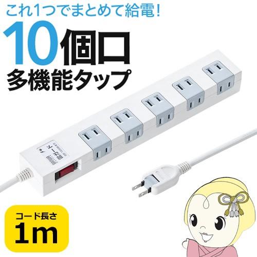 Tap Sp2110 1 雷ガードタップ 2p 10個口 1m ホワイト 小型acアダプタが差し込めるマグネット付きタップ 雷ガード 一括集中スイッチ ブレーカー付き 2p 10個口 1m ホワイト サンワサプライ株式会社