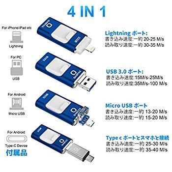 Amazon Eyatek Usbメモリ Iphone Usbメモリ Ipad Usb メモリ 32gb Usb3 0 フラッシュドライブiphone Ipad Lightning Pc Android Micro Usb Usb C対応 4 In 1 Otg機能 スマホメモリiphone バックアップ Type C変換アダプター付属 容量不足解消 一本三役 金属製 日本語